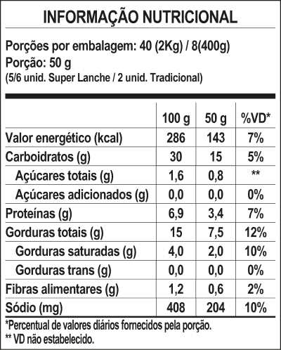Ingredientes selecionados com propósito. Fécula de mandioca, leite pasteurizado integral, ovos, queijo minas artesanal, óleo de girassol, sementes de chia, sementes de girassol, grãos de quinoa vermelha e sal.