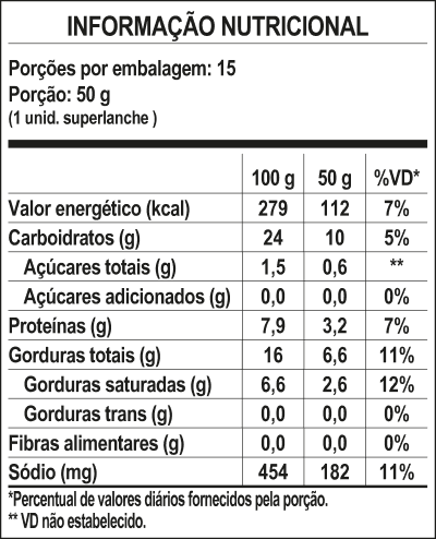 Fécula de mandioca, leite pasteurizado integral, queijo minas artesanal, requeijão, ovos, óleo de girassol e sal.